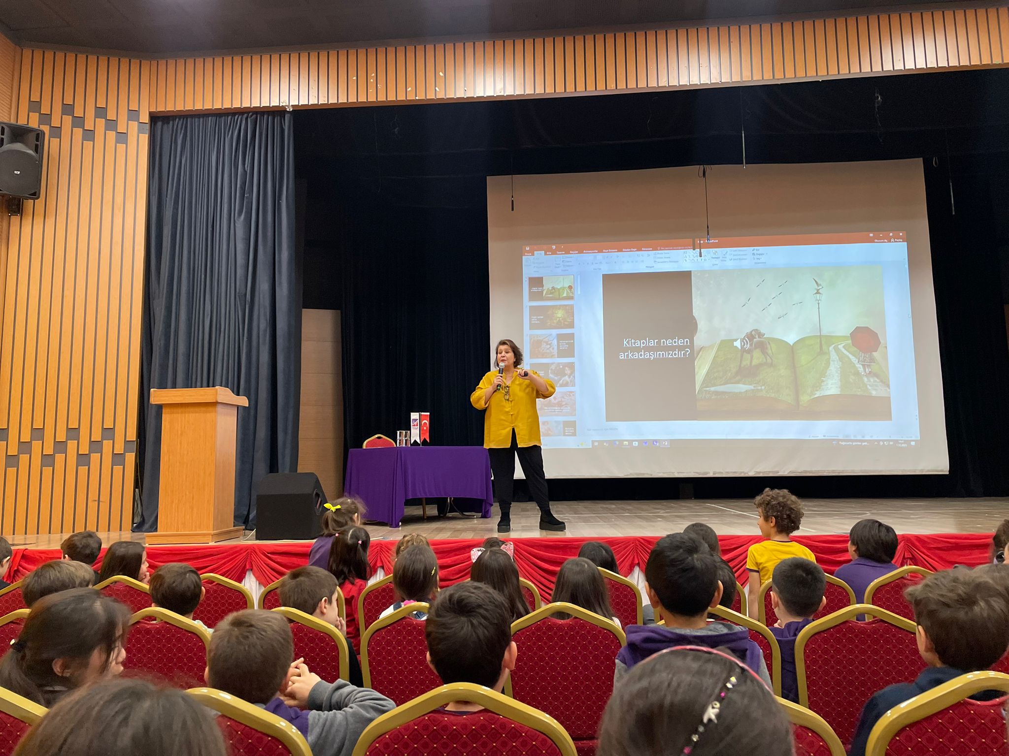 Soru-cevap kısmında öğrenciler, kitapla ilgili merak ettikleri ayrıntıları sorarken yazarımız da yazma disiplininden günlük okuma alışkanlıklarına kadar pek çok ipucu paylaştı. Program, öğrencilerin katkıları ve yazarımızın paylaşımlarıyla zenginleşen verimli bir öğrenme deneyimi olarak tamamlandı.