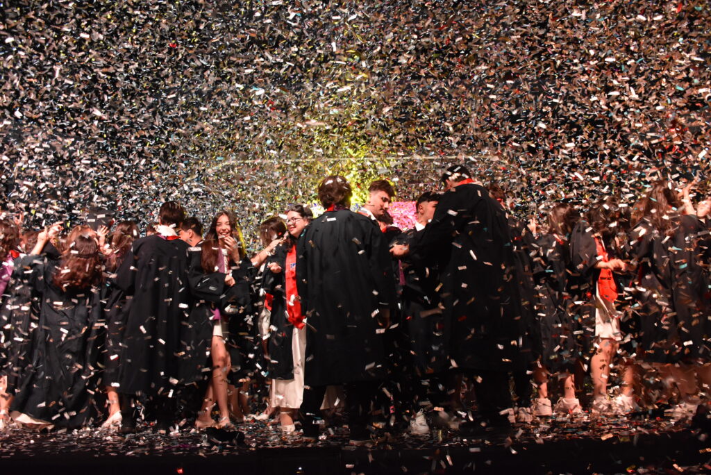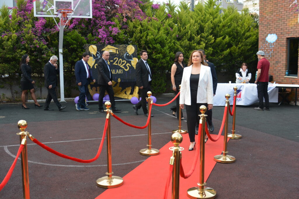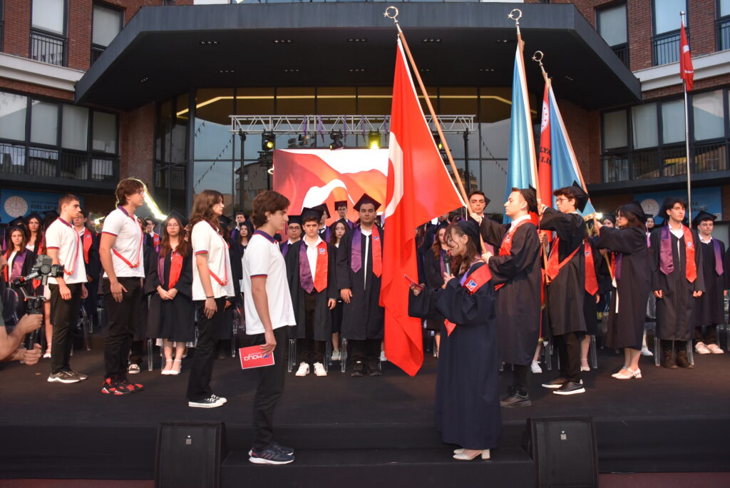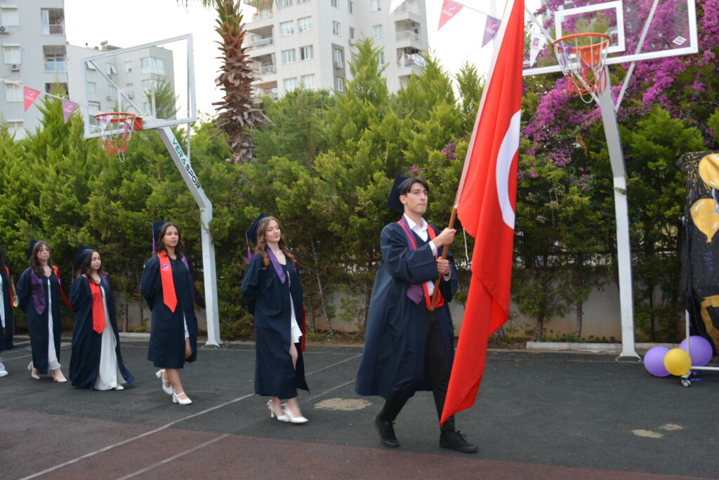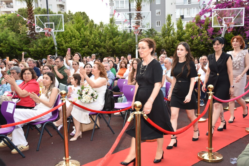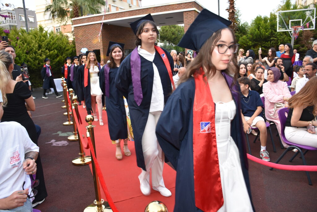 Okul kampüsünde düzenlenen törende, öğrenciler mezuniyet sevinçlerini aileleri, öğretmenleri ve arkadaşlarıyla birlikte yaşadı.