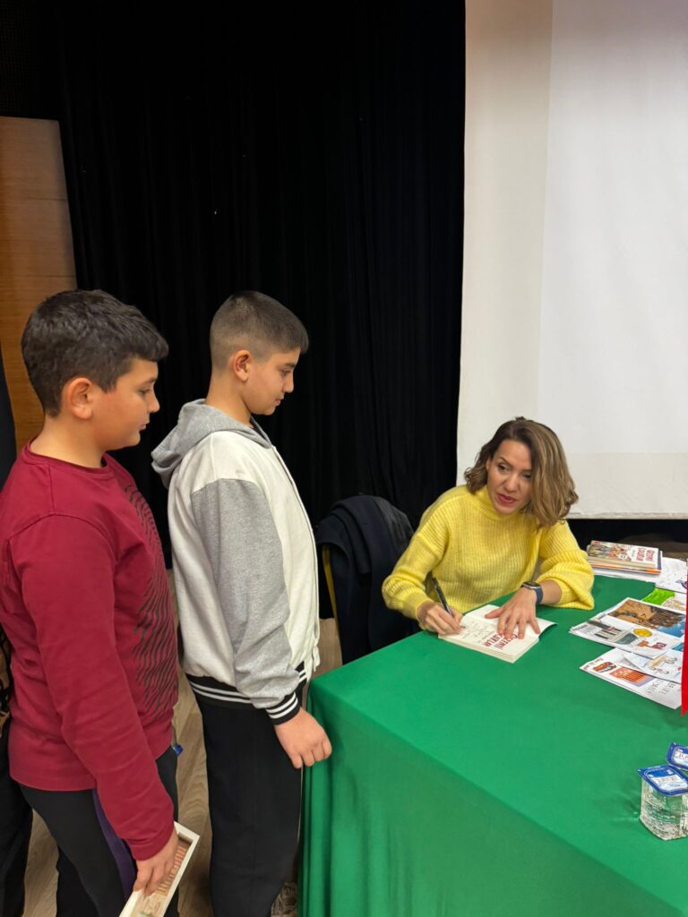 Etkinliğin en heyecan verici anlarından biri de öğrencilerimizin Serap Şahin’e yönelttikleri sorular ve kitaplarını imzalatma bölümüydü. Büyük bir coşku ve merakla gerçekleşen bu etkileşim, genç yazar adaylarımızın yazma motivasyonunu daha da artırdı.