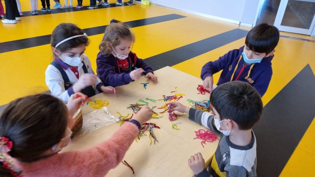 ÇABA GÖSTERMEK HİÇ BU KADAR EĞLENCELİ OLMAMIŞTI Plastik kaşıkla hedefe düşürmeden pinpon topu taşıma, geometrik oluşan örüntü kartlarını mandalla ipe asarak örüntüyü oluşturma, yumurtadan çıkan A3 boyutundaki hayvan figürlü mandalaları işbirliği ve çaba göstererek boyama, 1-5 arası sayıların yazılı olduğu çemberlerin içine belirtilen sayı kadar ruloları bir çubuk yardımı ile taşıyarak belirtilen sayı ile eşleştirme […]