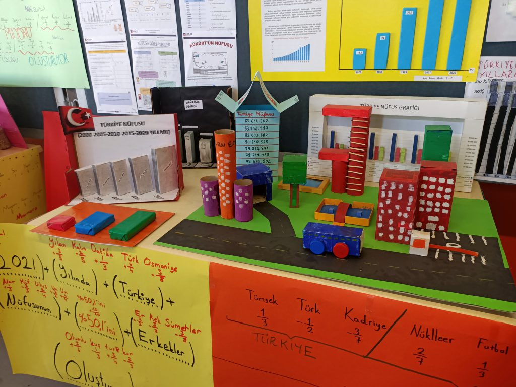 7. sınıf öğrencilerimiz “Nüfus” teması doğrultusunda muhteşem bir sergiye imza attı.Üç boyutlu soy ağacı, Göç artış grafiği, Nüfus oranı ve mutluluk ve daha bir çok konuda hazırladıkları sergiyi gezmek, emeklerine tanıklık etmek muhteşemdi. Bir çok farklı dersde disiplinleraraı arası çalışmalarla gerçekleştirdikleri bu muhteşem ile şenlendi koridorlarımız. Emeği geçen tüm öğrenci ve öğretmenlerimize teşekkürlerimizle…