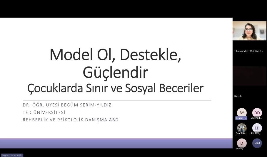 26 Kasım 2025 Çarşamba akşamı Microsoft Teams üzerinden gerçekleştirilen “Model Ol, Destekle, Güçlendir: Çocuklarda Sınır ve Sosyal Beceriler” seminerimiz, velilerimizin sıcak katılımıyla gerçekleşti.