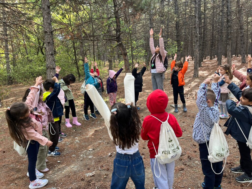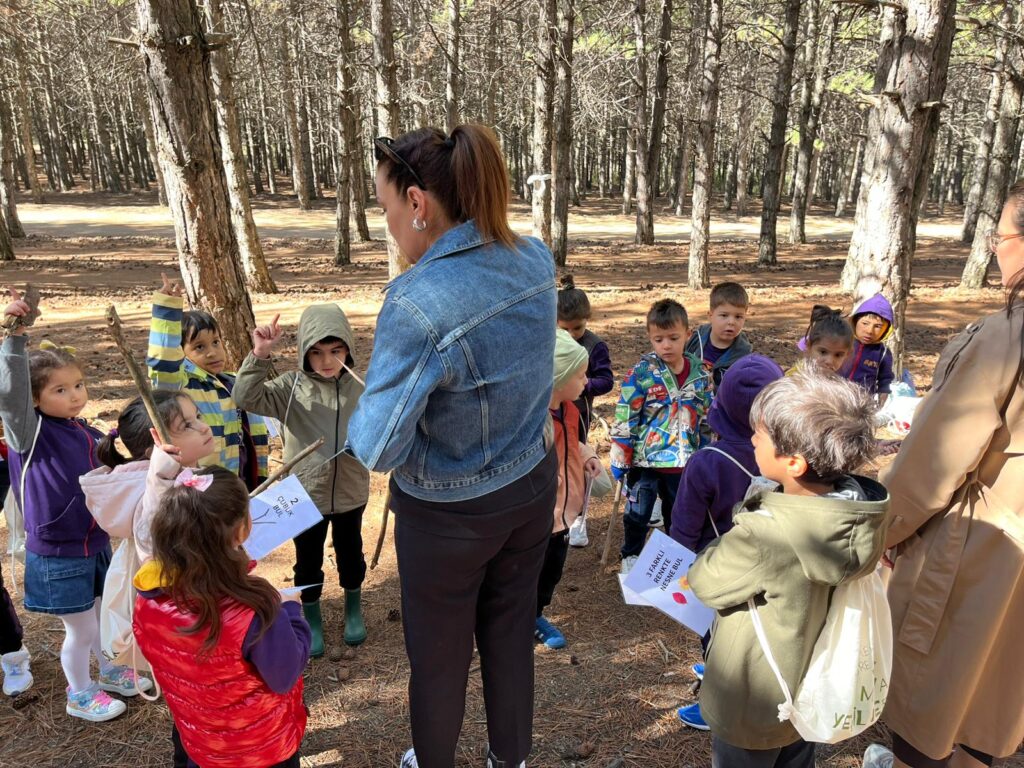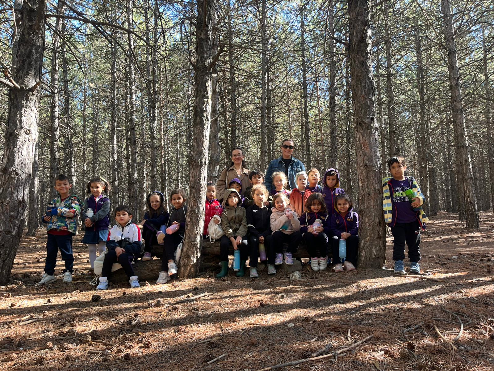 Orman yolunda yürüyüş yapan çocuklarımız, ağaçları, kuşları ve çeşitli bitkileri yakından gözlemlediler. Öğretmenleri eşliğinde yaptıkları küçük incelemeler sayesinde doğanın sunduğu zenginlikleri keşfetme fırsatı buldular. Kimi öğrenciler yerdeki yaprakları toplayarak farklı renk ve şekilleri karşılaştırdı, kimileri de büyüteçlerle küçük böcekleri inceledi.