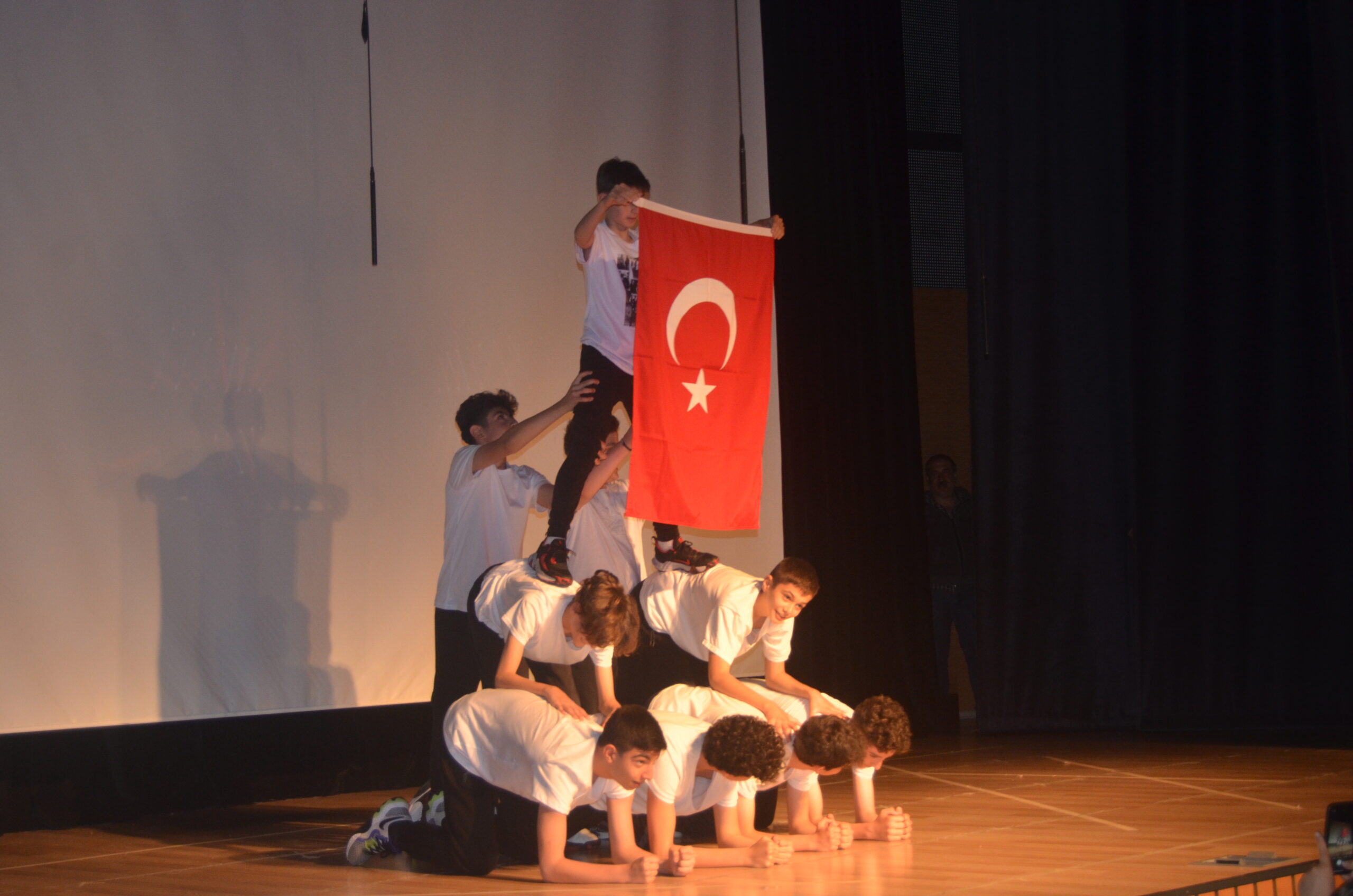 Öğrencilerimizle gerçekleştirdiğimiz törenimizde öğrencilerimiz bu anlamlı günü coşku ile kutladılar. Bando eşliğinde gerçekleşen kortej yürüyüşü, halk dansları modern danslar, tüylerimizi diken diken eden oratoryonun eşlik ettiği ve Atatürk ve gençlik marşlarının doyasıya söylendiği bu anlamlı törende seyirciler çocuklarımızı ayakta alkışladık.