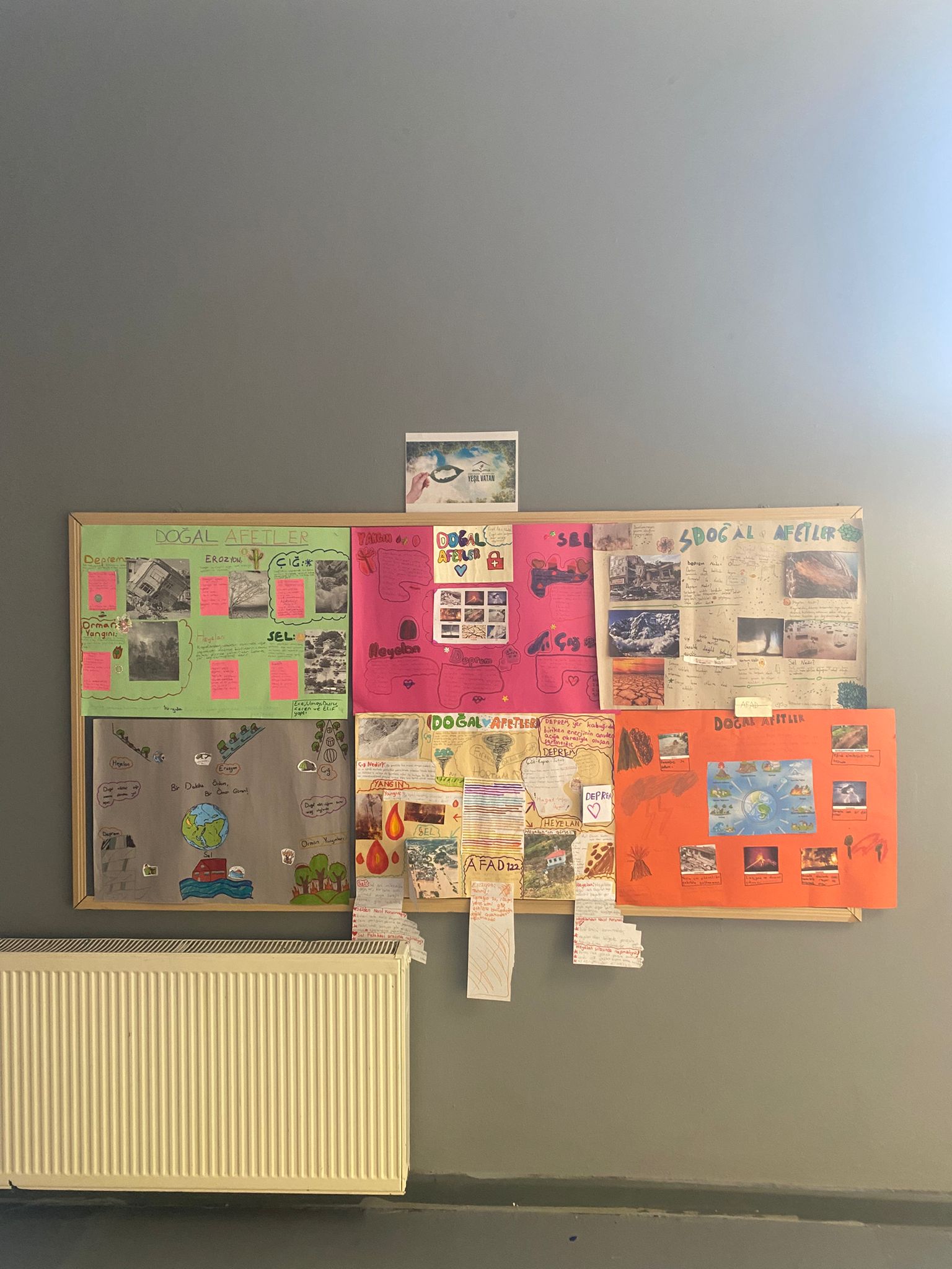 Hazırlanan afişler okul koridorlarında sergilenerek tüm öğrencilerin incelemesine sunuldu. Öğretmenler, afişlerin incelenmesi sırasında öğrencilerle afet öncesi hazırlıkların ve bilinçli hareket etmenin önemine dair değerlendirmeler yaptı. Bu süreçte öğrenciler, hem bilgi hem de sorumluluk bilinci açısından önemli kazanımlar elde etti.