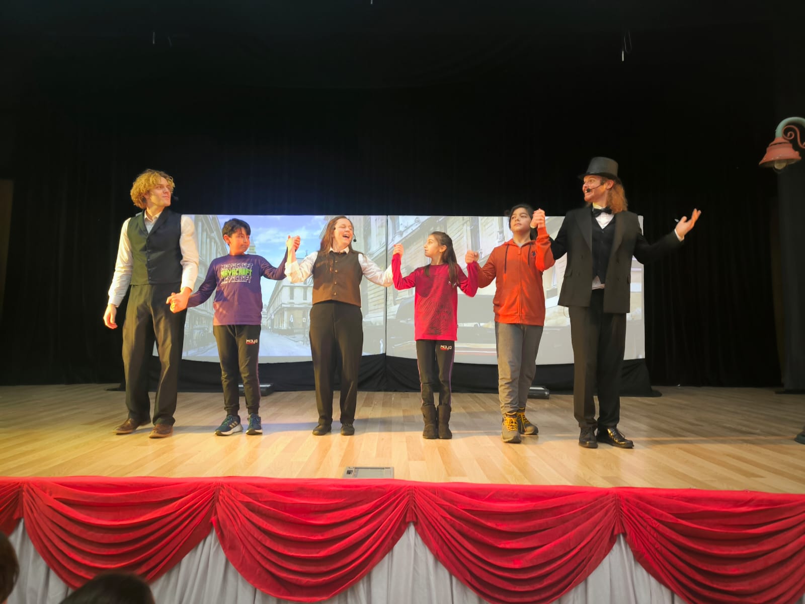 Okulumuzun konferans salonunda , 2., 3. ve 4. sınıf öğrencilerimize 4 Aralık 2024 Çarşamba günü, Willy Wonka, 10 Aralık Salı günü Enola Holmes tiyatro gösterisi, 5., 6., 7. ve 8. sınıf öğrencilerimizi hem eğlendirdi hem de eğitti.