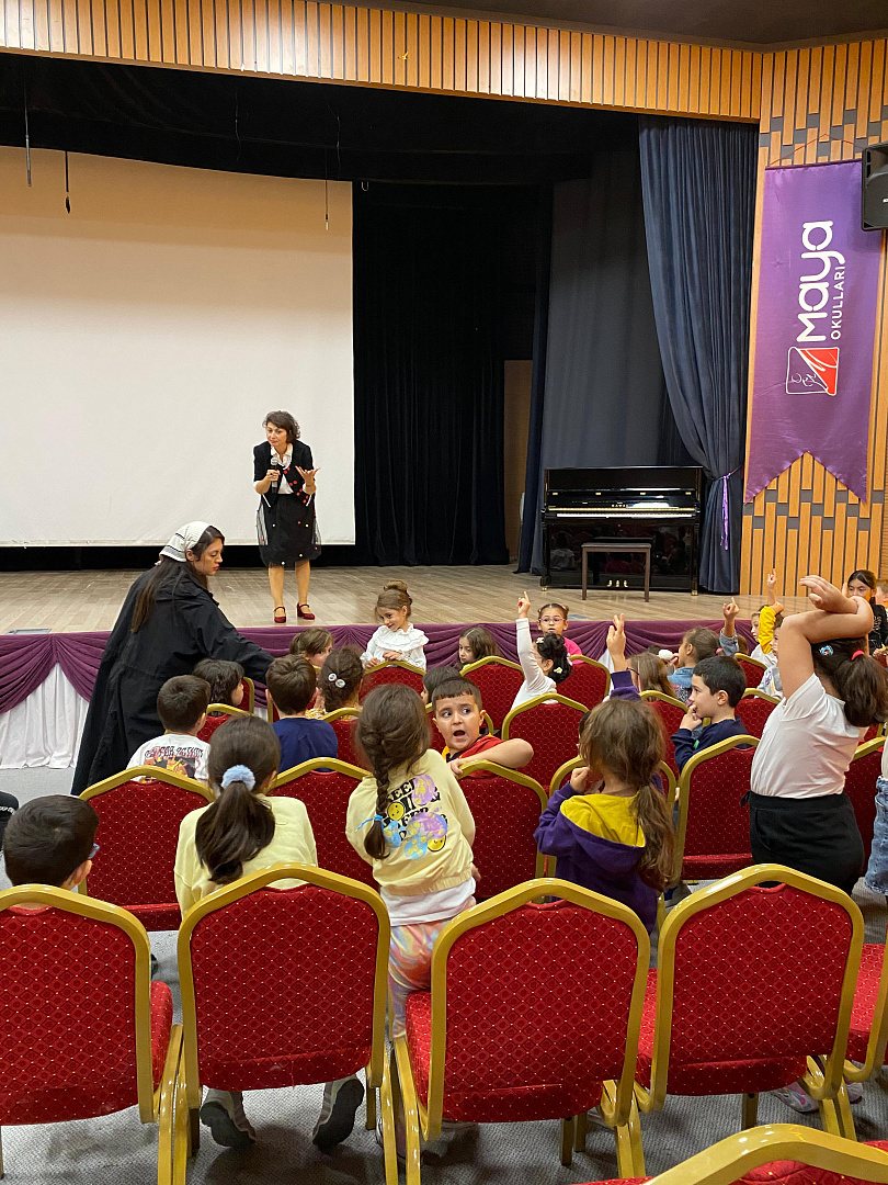 Okulumuz ikinci sınıf öğrencileri olarak; okulumuzun öncü uygulamalarından MAYADOKYA etkinlikleri kapsamında okuma alışkanlıklarını desteklemek, yazma becerilerini geliştirmek, yaratıcı fikirlerin paylaşılmasını teşvik etmek ve bilgi paylaşımıyla bir araya getirmek amacıyla “Maya’nın Sırrı” kitabının yazarı “Nermin Ferhan KARAMUTİ “ile buluştuk.