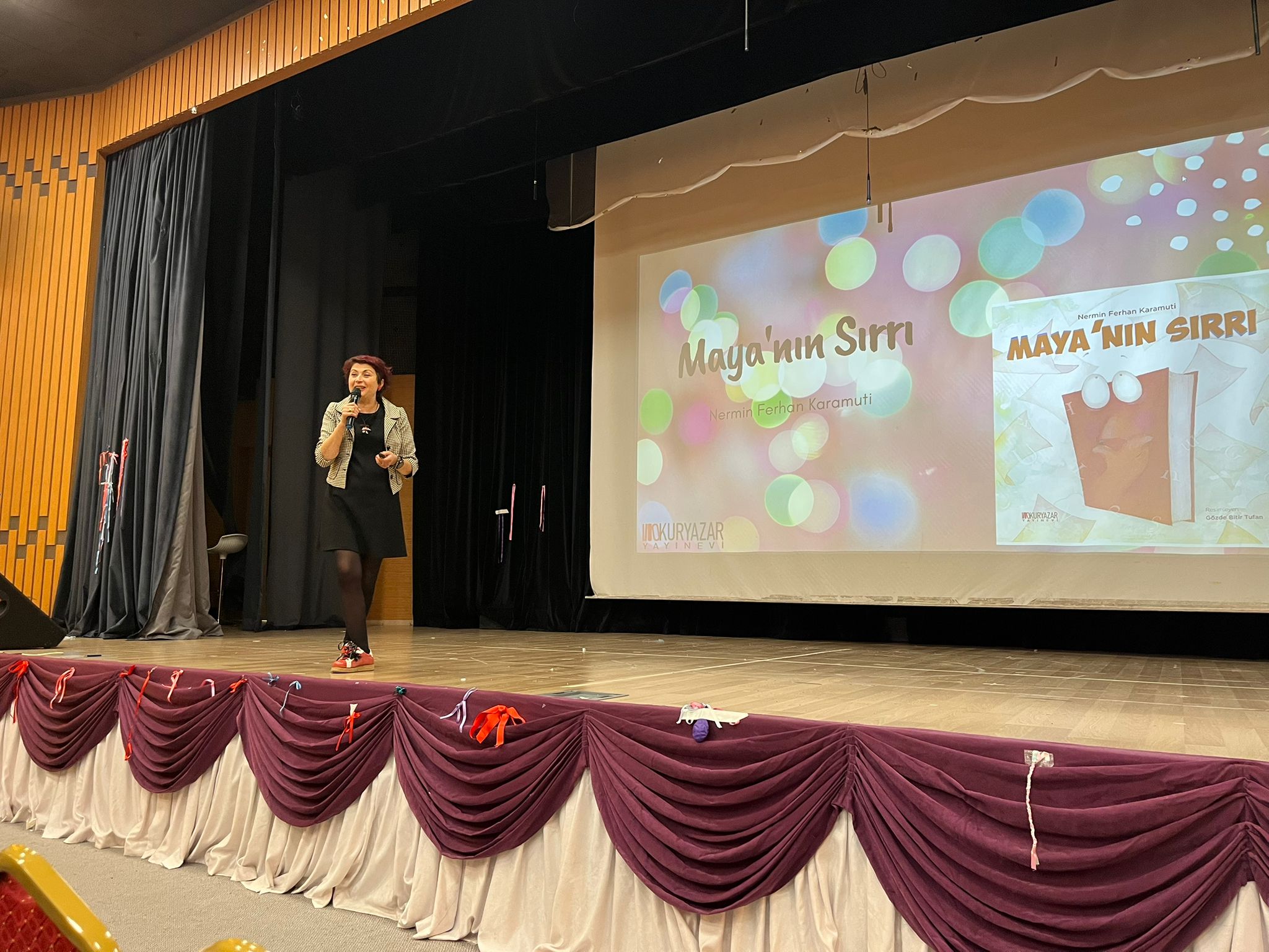 6 Kasım 2025 Perşembe günü ‘’ Maya’nın Sırrı’’ kitabının yazarı Sayın Nermin Ferhan Karamuti ile tanışma , soru sorma ve kitaplarını imzalatma şansını buldular. Kitap okuma sevgisinin ve öneminin vurgulandığı bu süreç çocuklarımız için anlamlı ve güzel bir anı olarak hafızalarına yerleşti.