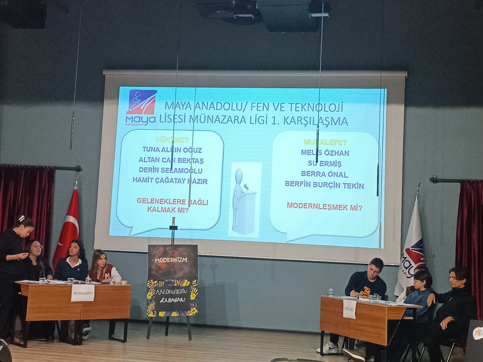 Sınıf öğrencilerimizle geleneksel olarak uyguladığımız Münazara Ligimiz Modernizm ve Gelenek konusunun karşılıklı olarak ele alınmasıyla başarıyla yapılandırıldı. Öğrencilerimizin araştırma yetenekleri, etkili iletişim becerileri ve mantıklı argümanları jüri üyeleri tarafından takdirle karşılandı. Bu anlamlı Münazara Ligimizde elde ettiğimiz başarı, öğrencilerimizin gelecekteki akademik ve sosyal hayatlarına büyük katkı sağlayacak ve potansiyellerini üst düzeye taşıyacak bir itici güç olarak değerlendiriyoruz. Önümüzdeki yarı final turunda görüşmek üzere diyor, emekleri için katılımcılarımıza teşekkür ediyoruz.