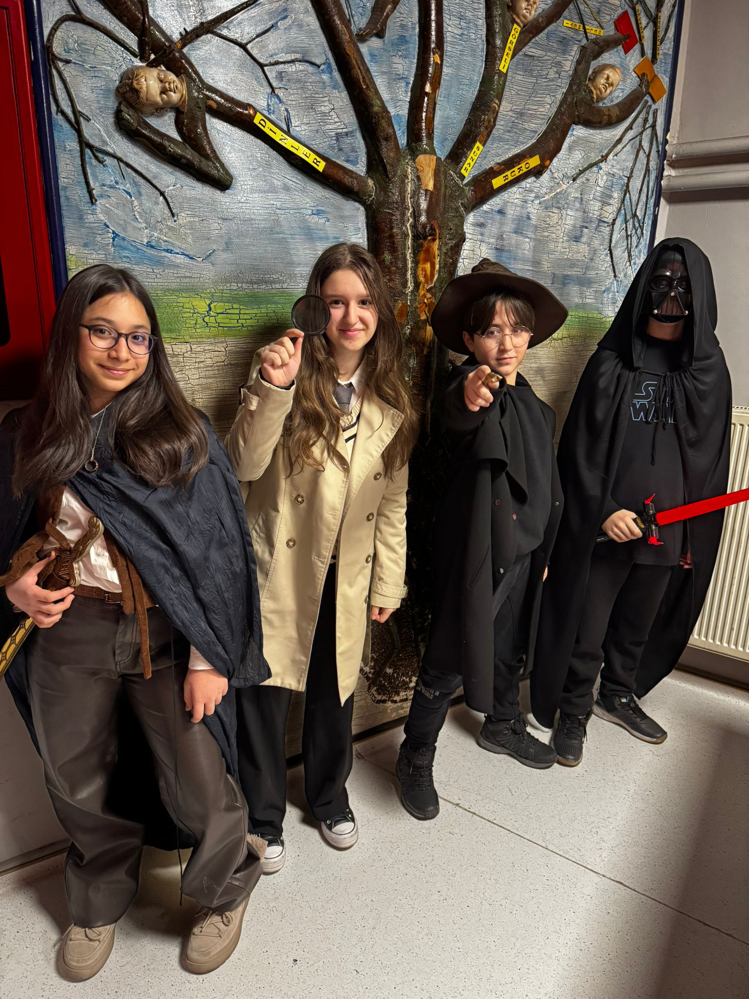 Kimisi Çalıkuşu Feride oldu ve elinde kalemiyle sınıftan sınıfa dolaştı, kimisi ise Sherlock Holmes olarak büyüteciyle gizemleri çözmeye çalıştı. Bahçede bir köşede Joker kahkahalarıyla dikkat çekerken, koridorun diğer ucunda Harry Potter ve arkadaşları cüppeleriyle büyü yapıyordu. Heidi, yaylalardan okula gelmiş gibi neşesiyle hepimizi güldürdü.
