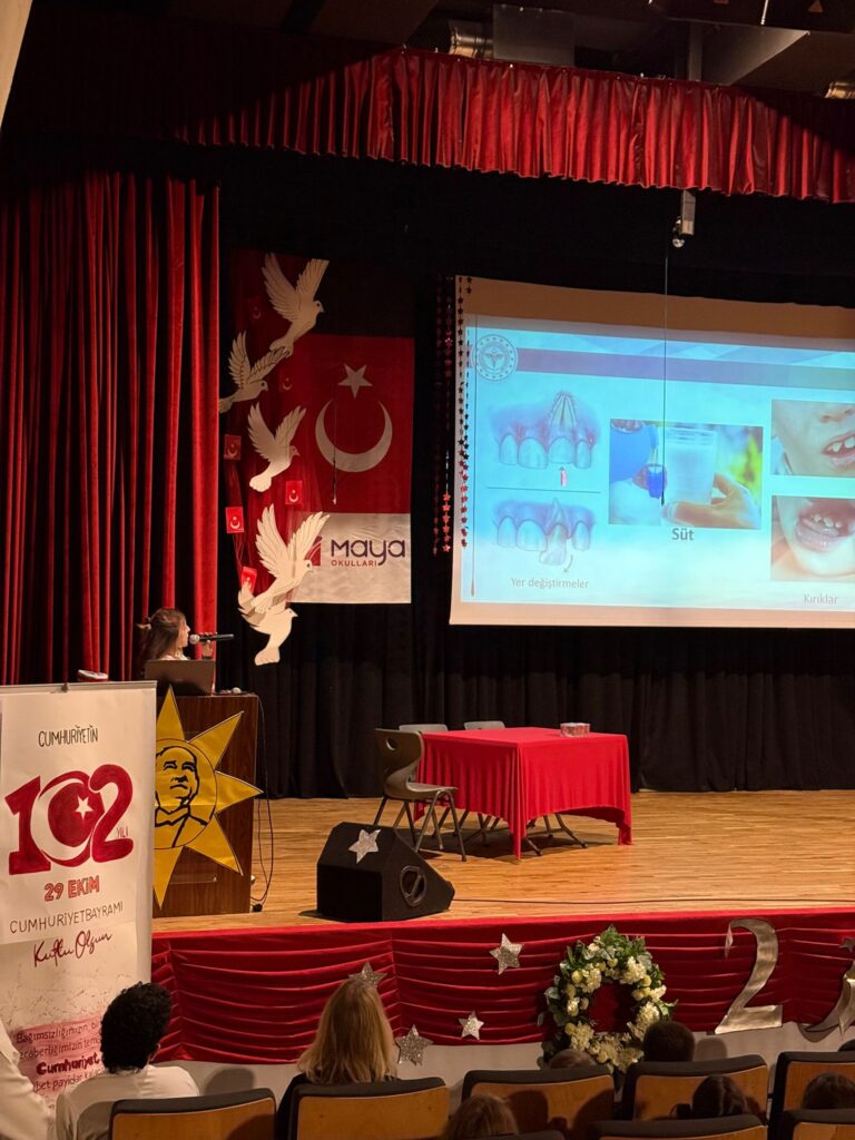 5 Kasım 2025 Çarşamba günü ilkokul öğrencilerimize Gölbaşı İlçe Sağlık Müdürlüğü yetkilileri tarafından Ağız ve Diş Sağlığı eğitimi verilmiştir. Öğrencilerimiz, dişlerini düzenli fırçalamanın, sağlıklı beslenmenin ve düzenli diş hekimi kontrollerinin önemini uygulamalı örneklerle öğrenmişlerdir. Ayrıca, uzman diyetisyen de öğrencilere diyabet hakkında bilgilendirme yaparak, şeker tüketimi ve dengeli beslenmenin vücudumuz üzerindeki etkilerinden bahsetmiştir. Etkinlik, öğrencilerimizin sağlıklı yaşam alışkanlıklarını pekiştirmeyi ve bilinçli bireyler olarak yetişmelerine katkı sağlamayı amaçlamıştır. Gün sonunda öğrenciler, küçük yaşta kazanılan doğru alışkanlıkların yaşam boyu sağlık için ne kadar önemli olduğunu bir kez daha fark etmişlerdir.