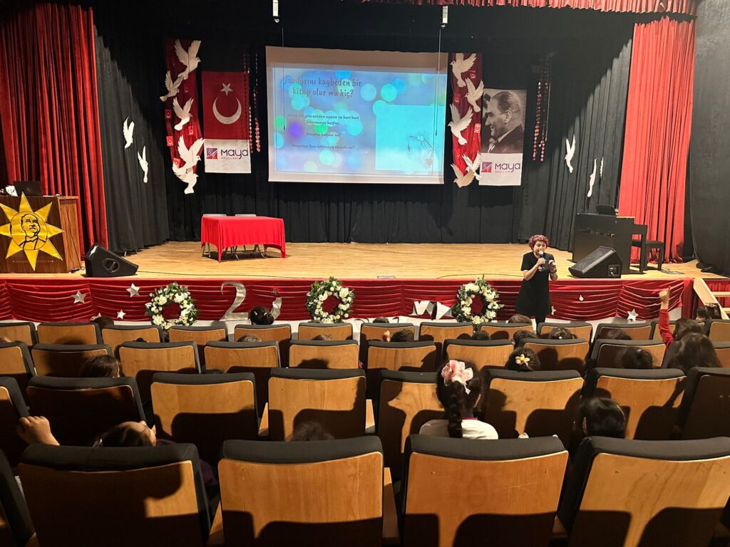 6 Kasım tarihinde 2. sınıf öğrencilerimiz, Maya’nın Sırrı kitabının yazarı Nermin Ferhan Karamuti ile keyifli bir yazar buluşmasında bir araya geldiler. Öğrenciler, kitabın yazım süreci ve karakterlerin oluşum hikâyeleri hakkında yazarla samimi bir sohbet gerçekleştirdiler. Merak ettikleri soruları sorma fırsatı bulan öğrenciler, yazarlık serüveninin inceliklerini birinci ağızdan dinlediler. Etkinliğin sonunda Nermin Ferhan Karamuti, öğrencilerin kitaplarını imzalayarak onlara unutulmaz bir anı bıraktı. Bu özel buluşma, öğrencilerimizin okuma sevgisini ve edebiyata olan ilgisini pekiştiren anlamlı bir deneyim oldu.