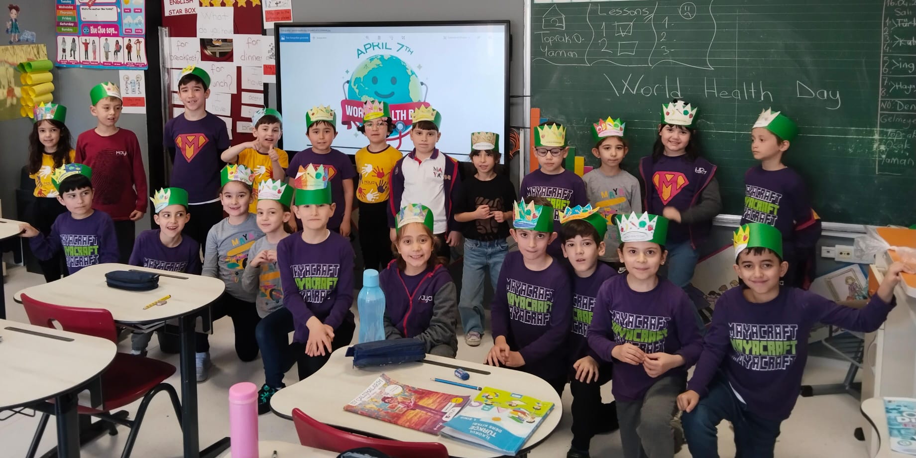Dünya Sağlık Günü, her yıl 16 Nisan’da kutlanarak küresel sağlık bilincini artırmayı amaçlar. Bu özel günde sağlıklı beslenmenin önemini vurgulamak için ana sınıfı ve 1. sınıf öğrencilerimizle sağlık teması üzerinden meslekleri tekrar ettik. Sağlıklı- sağlıksız besinler hakkında taç hazırladık. Bu sayede, farkındalık uyandırdık ve sağlığımızı korumamıza destek kişilerin önemini kavramayı amaçladık.