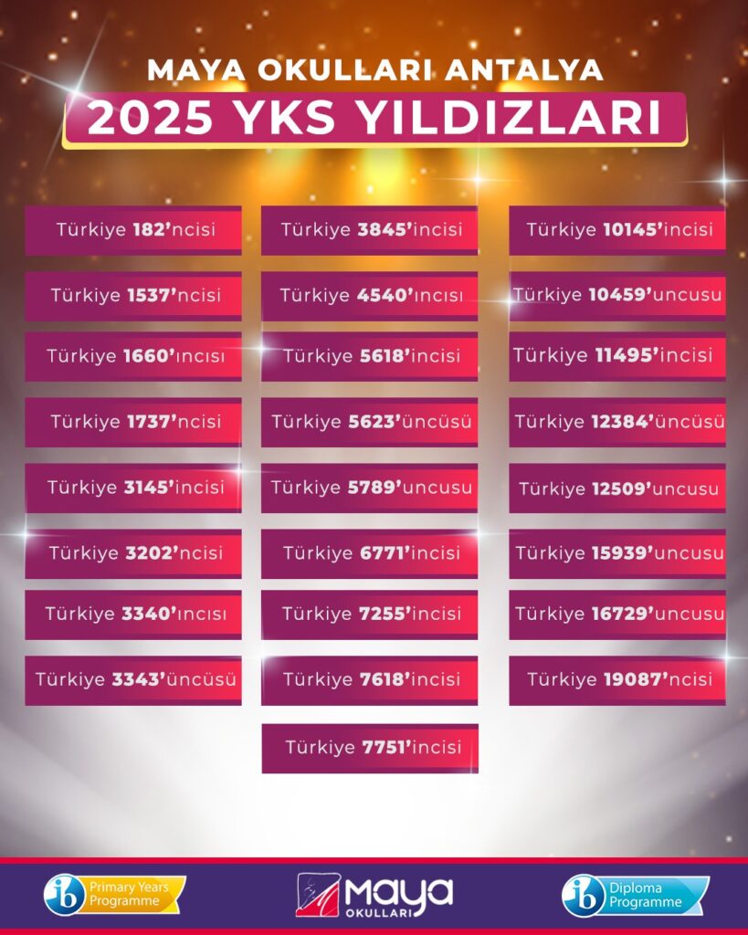Maya Okulları Antalya Yerleşkesi olarak, 2025 Yükseköğretim Kurumları Sınavı’nda ve...